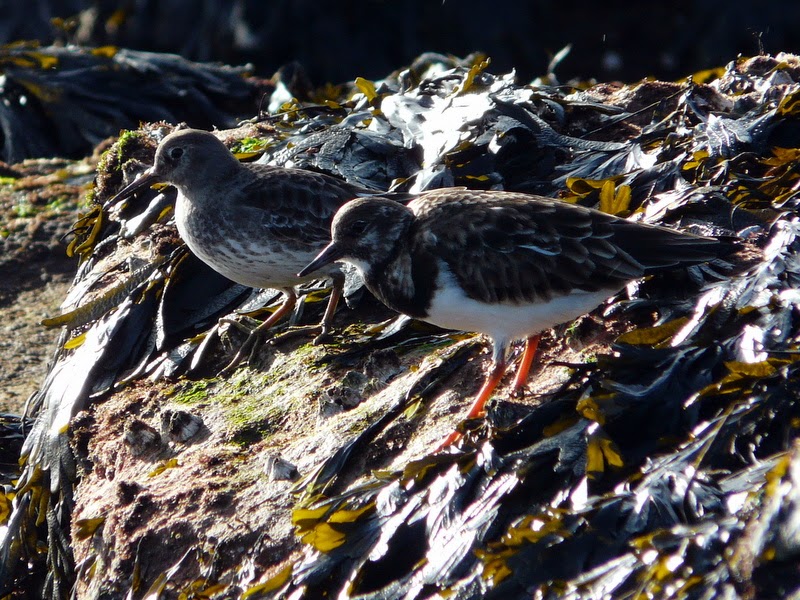 I adopted the 'sit and wait' strategy this afternoon and was rewarded with views of at least 7 purple sandpipers, down to less than 10 ft. I got them on Maer Rocks at low tide, despite the presence of lots of rock-pooling kids and dog walkers. This seems to be a well-established site now. Mark Bailey had 12 birds there 3 days ago, just 2 shy of my all-time highest count, and I've seen birds regularly there throughout the winter. Weird to think I only had my first there in November 2011. The novelty of seeing them still hasn't really worn off! Prior to that there had been a 20 year drought in purple sandpiper sightings in Exmouth, with the exception of a bird off Orcombe Point, seen by Terry Smith a few years back. They must be getting on rocks below Straight Point when Maer Rocks are covered. These are inaccessible and impossible to view unless you're on a boat.