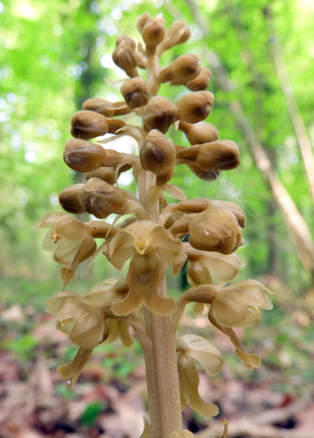 I had a job down in Newton Abbot this morning, so took the opportunity to pop into one of my favourite orchid sites, near Chudleigh. This Bird's-nest Orchid was my star find. It may well be nowhere near as colourful as other orchid species but it's golden hue, rarity, parasitic tendencies and difficulty to find puts it right up there as one of my favourites. It's a real thrill to find one in Devon at least. They're far more plentiful further east.