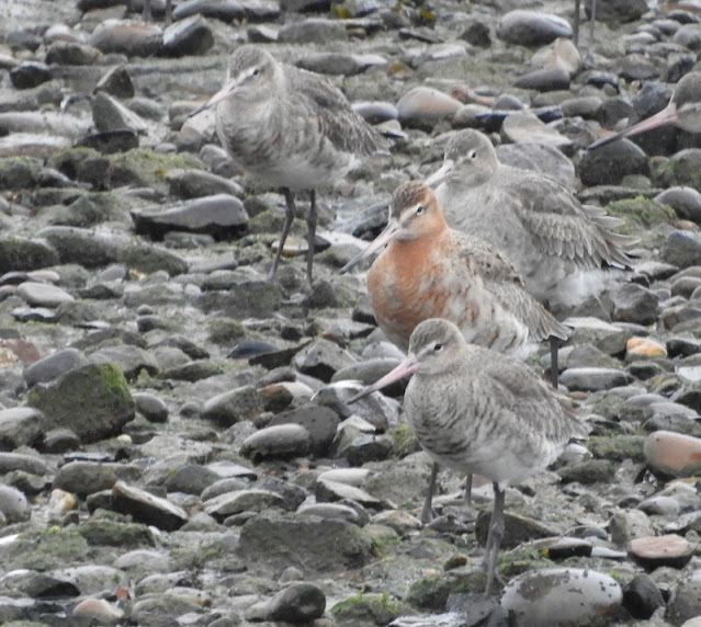 On the 25th a flock of c560+ Black-tailed Godwits was roosting below the railway line off Mudbank.