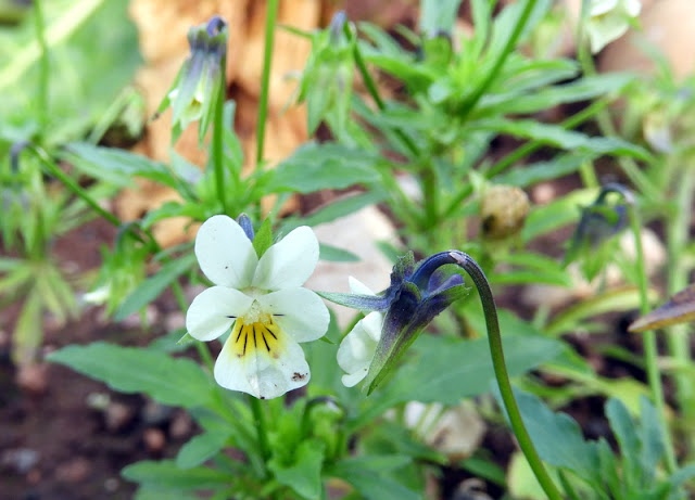 Common Dog-violet - Bystock 27/3/21 (and below). White spur, pointed sepals.